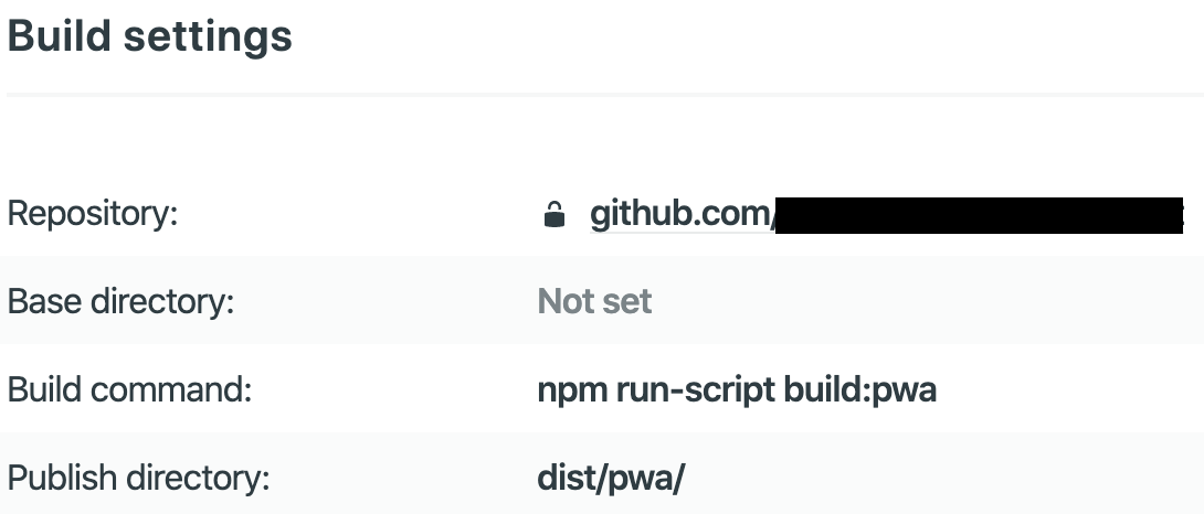 Netlify Deploy Setting Netlify의 배포 디렉토리는 dist/pwa/ 로 되어있습니다.