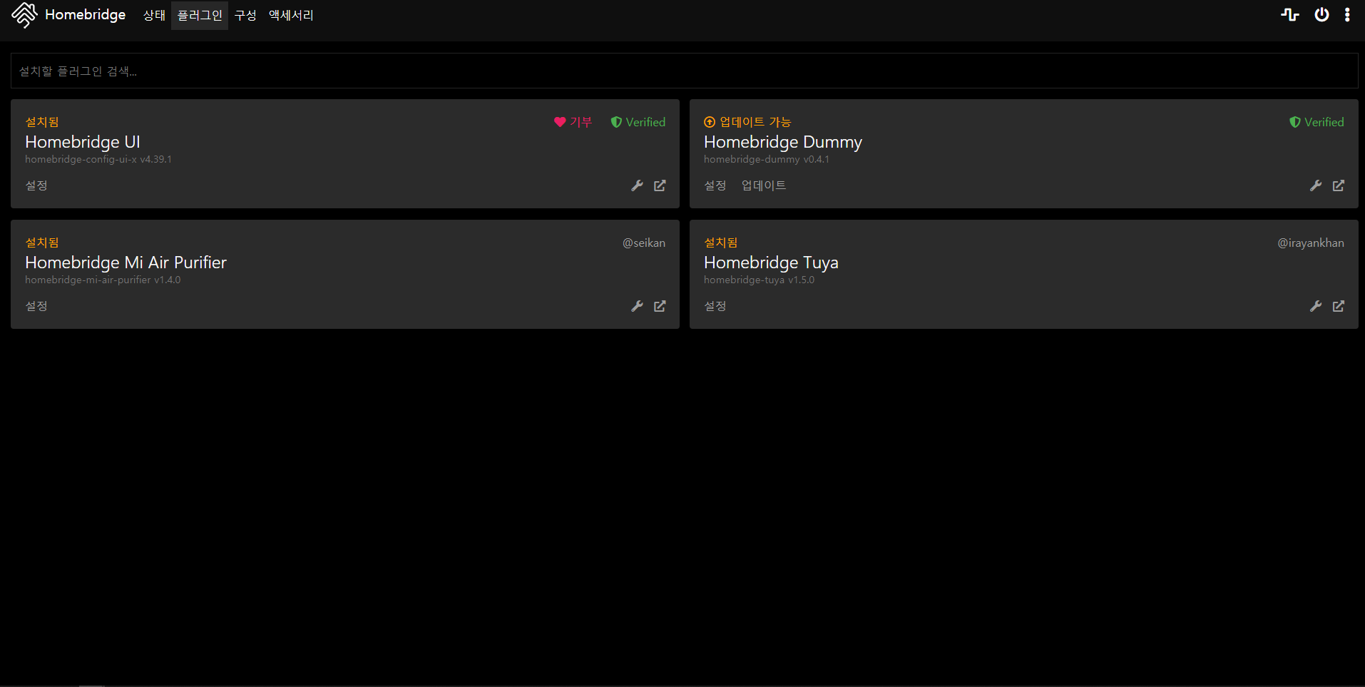 저는 homebridge-tuya라는 이름의 플러그인을 사용하였습니다.