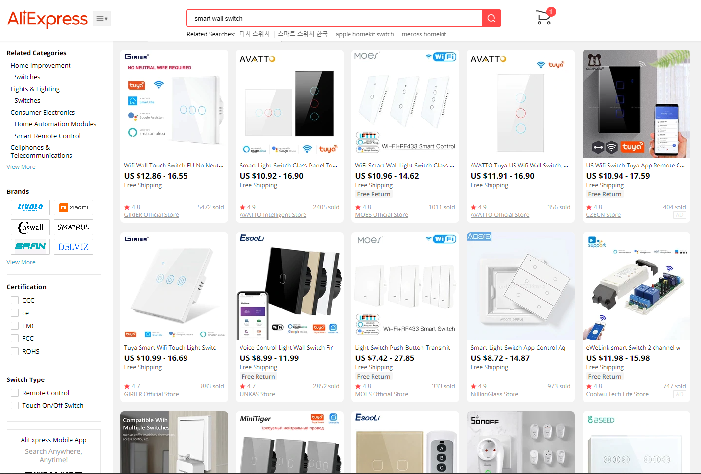 그리고 같이 구매한 1구 스위치 제품은 벽에 설치하여도, 작동하지 않았습니다. 제품 구매 시 본인 집에서 잘 작동할지 확인한 후 구매 결정 추천해 드립니다.