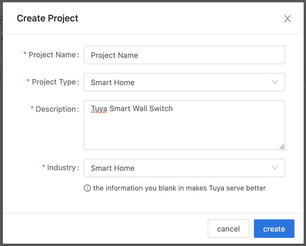 Free Trial 선택 다시 돌아와서 우측 상단의 Create 버튼으로 프로젝트를 생성해줍니다. 정보는 Smart Home으로 적당히 입력해줍니다.