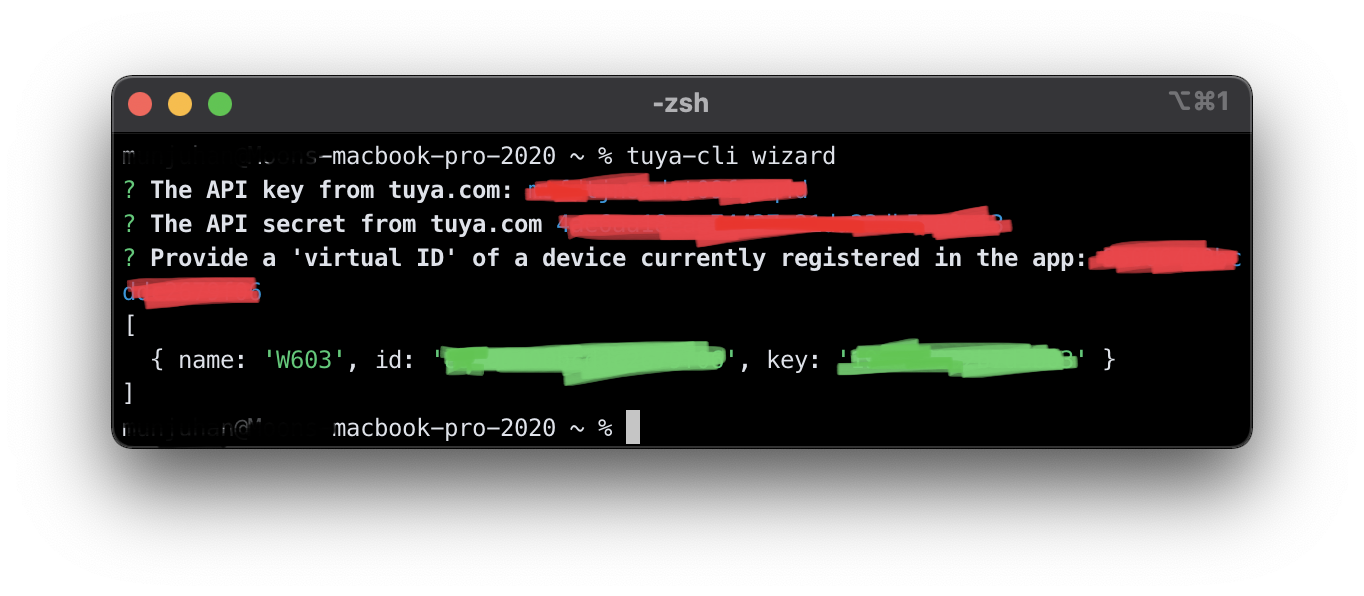 { "platform": "TuyaLan", "devices": [ { "name": "{{Device Name}}", "type": "MultiOutlet", "manufacturer": "GeekBee", "model": "Smart Wifi Power Strip", "id": "{{Device Id}}", "key": "{{Device Key}}", "outletCount": 3 } ] }