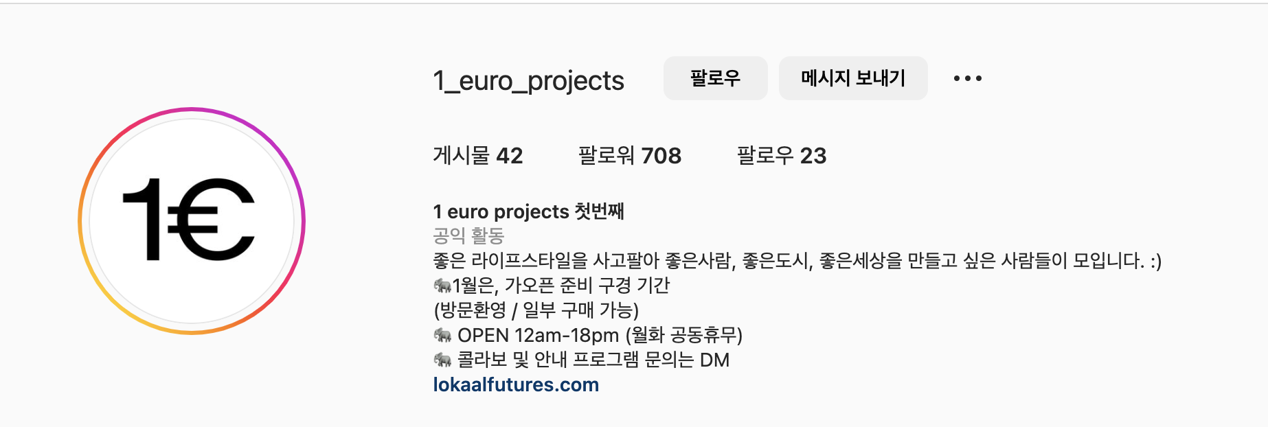 1. lokaal futures spacelab(오래된미래 공간연구소) website instagram"1 유로 프로젝트"를 진행하고 관리하는 공간으로 보입니다.