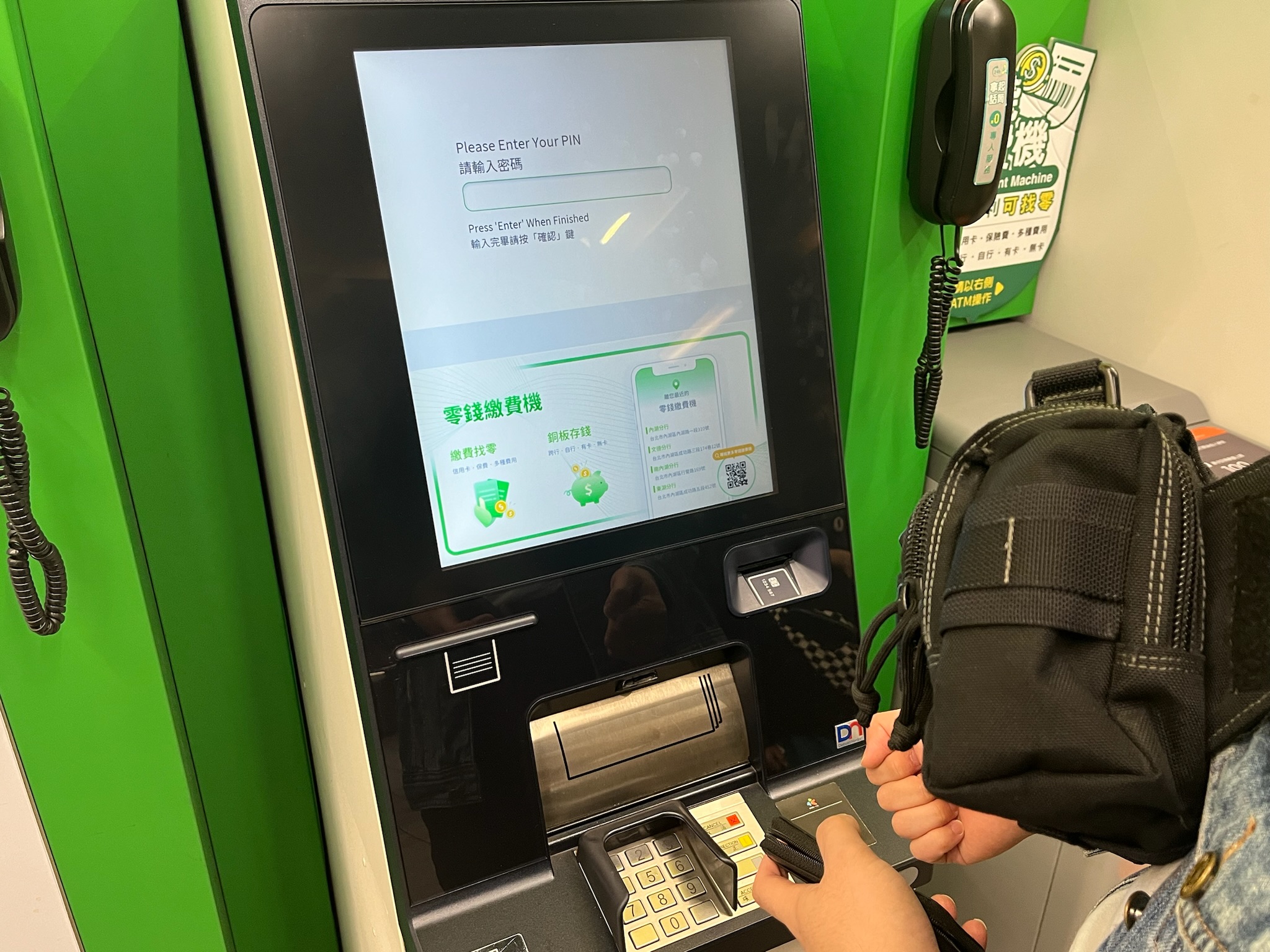 아래의 키패드로 카드의 비밀번호를 입력합니다.