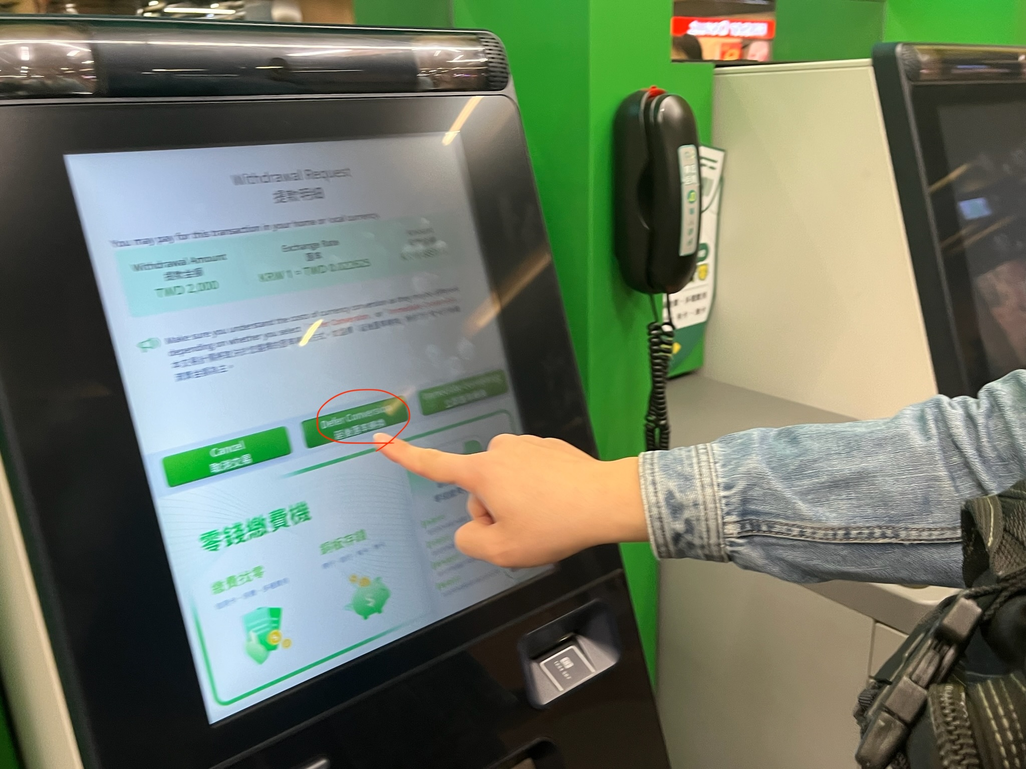 100 ~ 200NT 지폐를 받을 것 인지 선택 합니다.